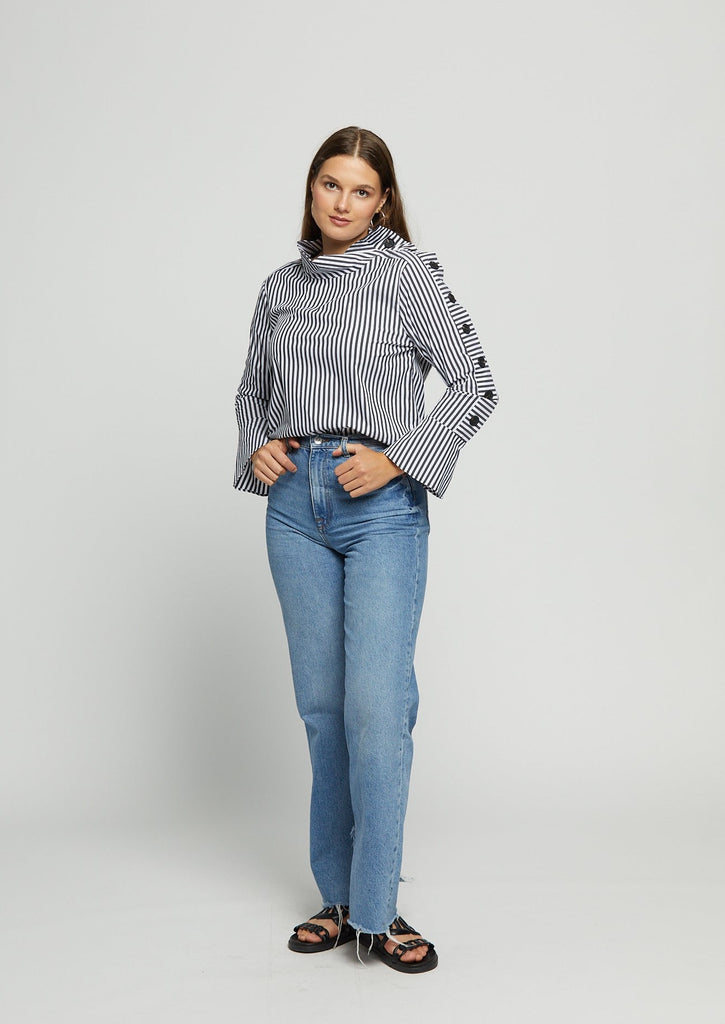 Kya Striped Button Blouse - Black
