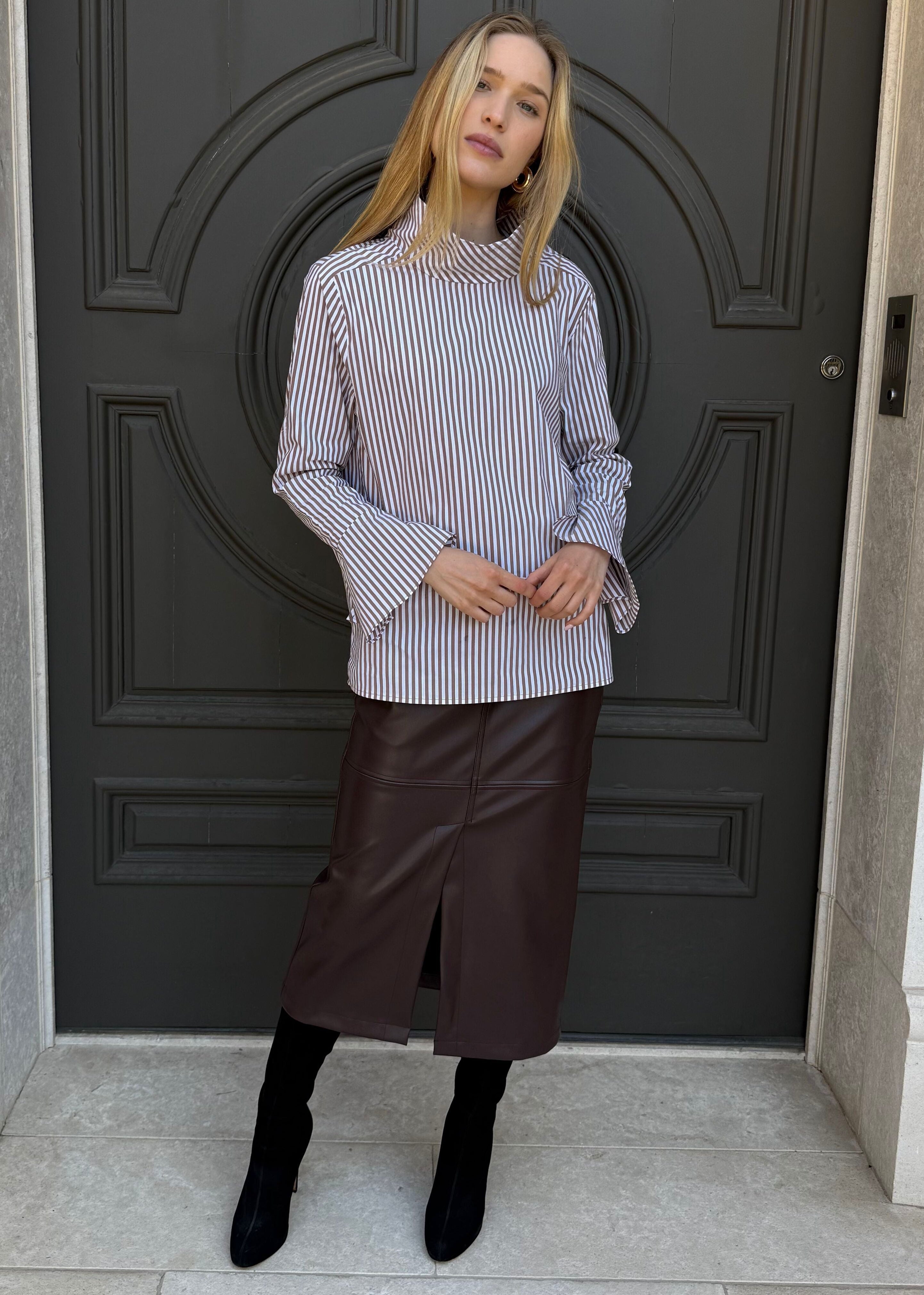The Kya Striped Blouse redefines classic elegance, making it a versatile choice for various occasions. Whether paired with trousers or jeans, this blouse promises to become a cherished piece in your collection – embodying both timeless style and contemporary flair.