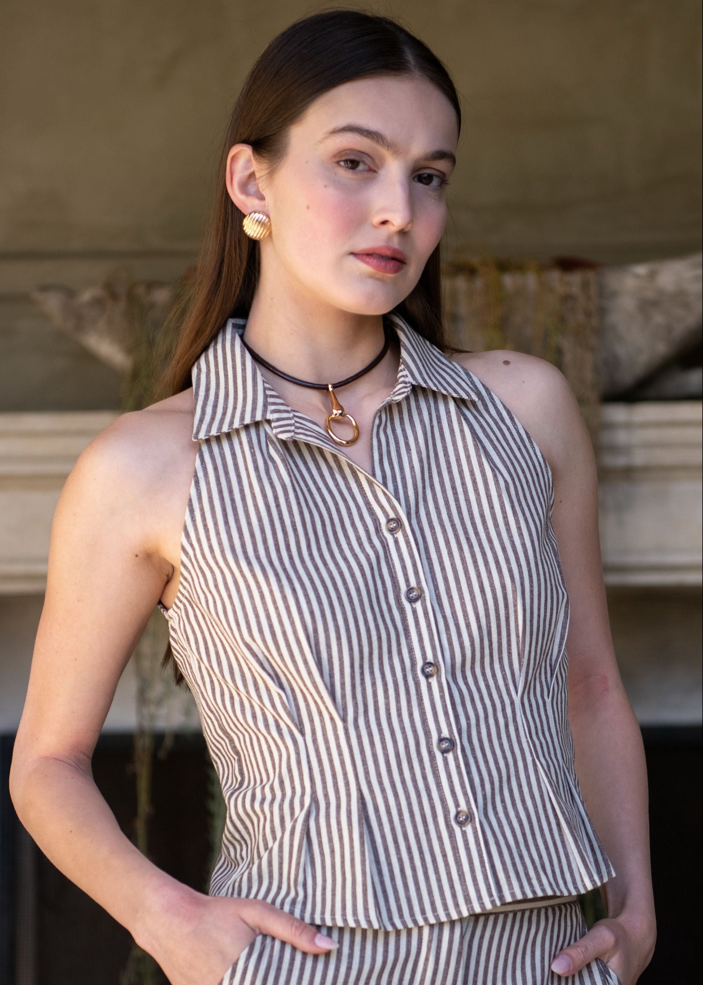 Larkin Metal Horse Bit Pendant Cord Necklace - Gold