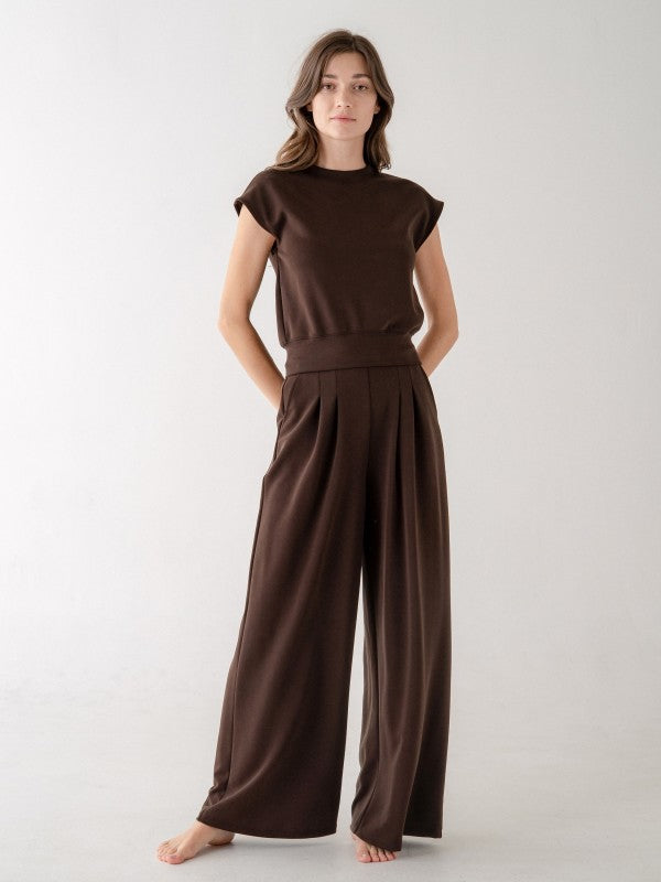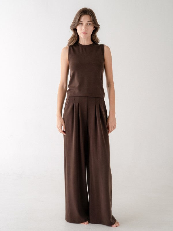 Libby Pleated Wide Leg Loose Pants - Coffee Brown