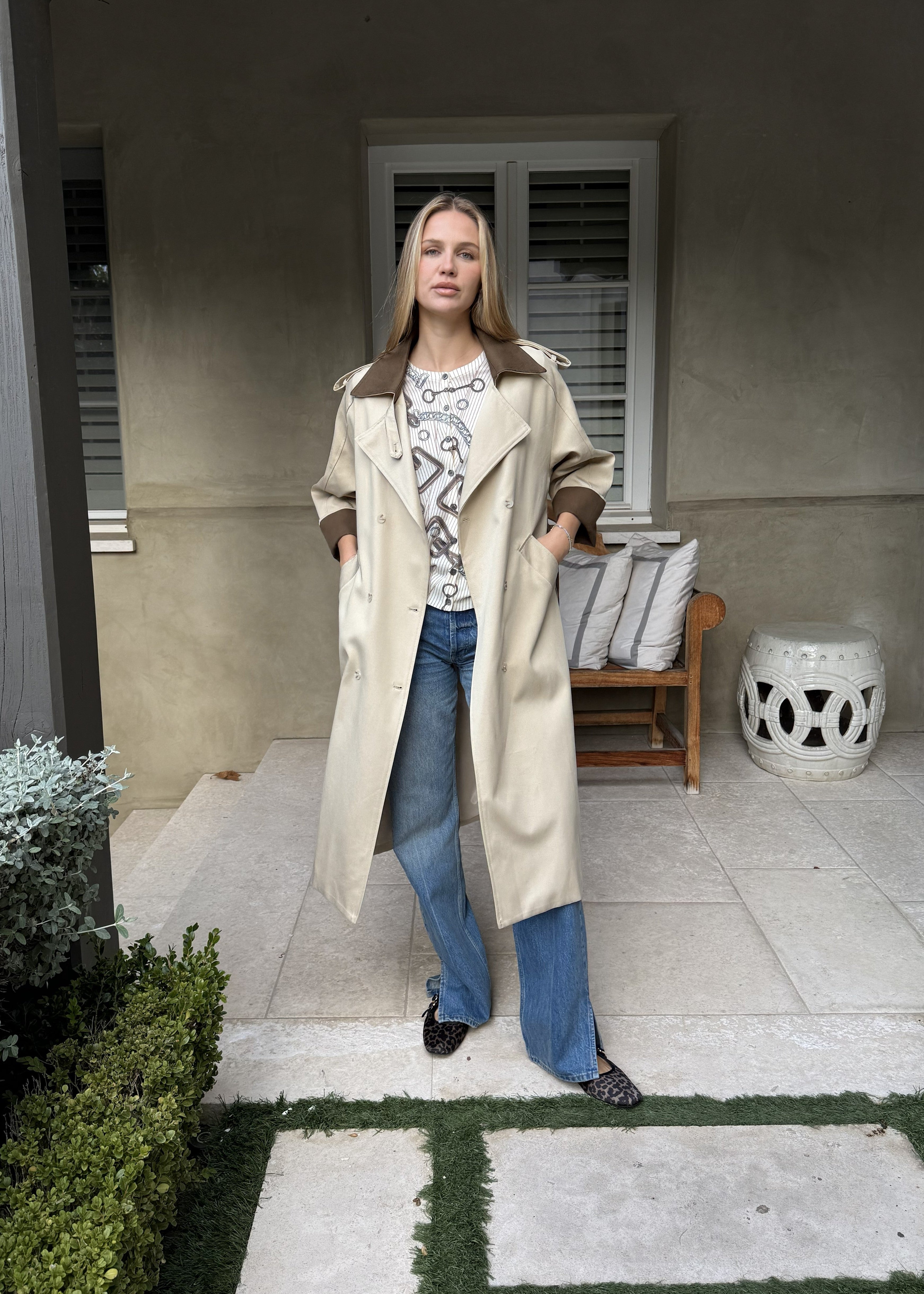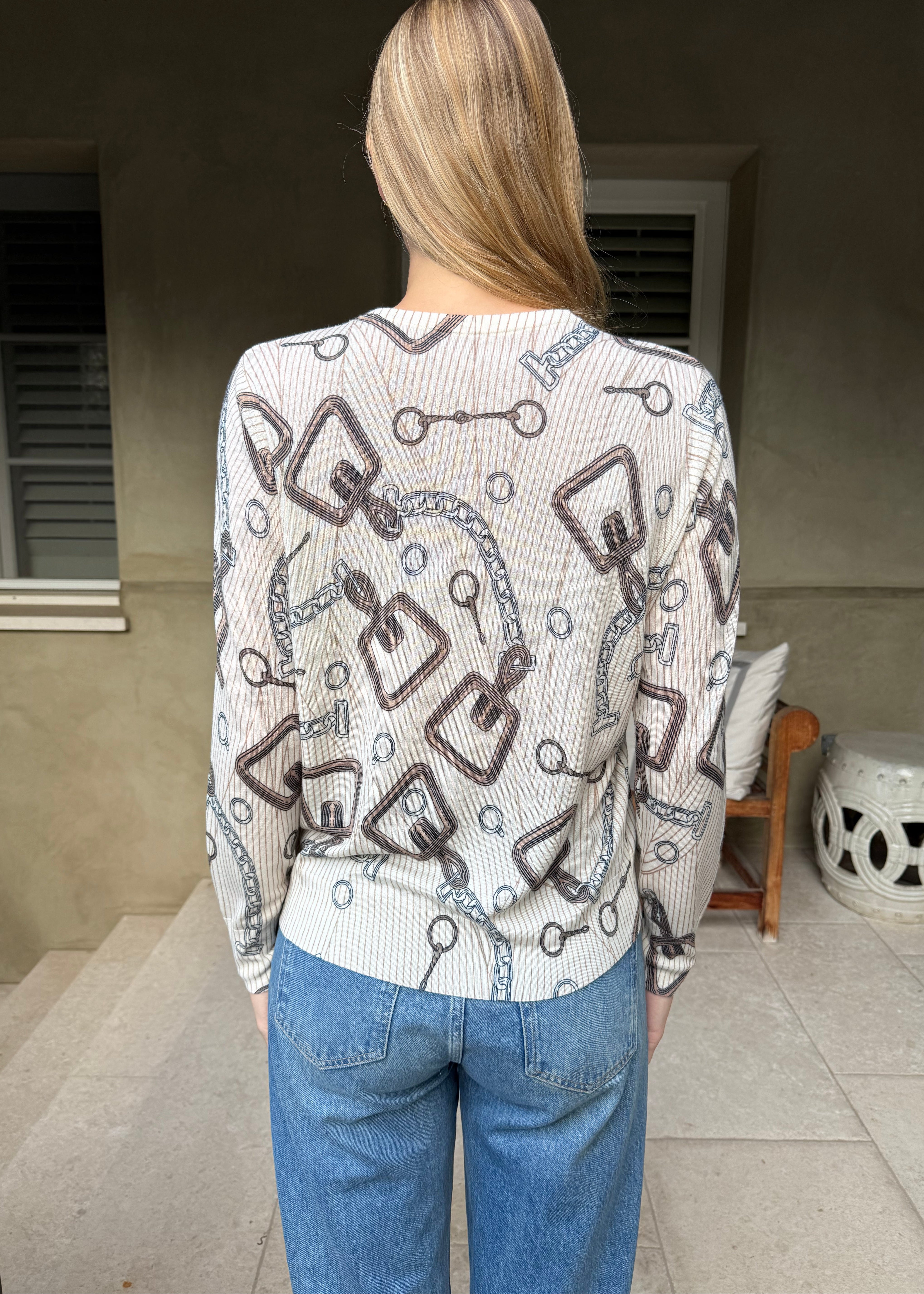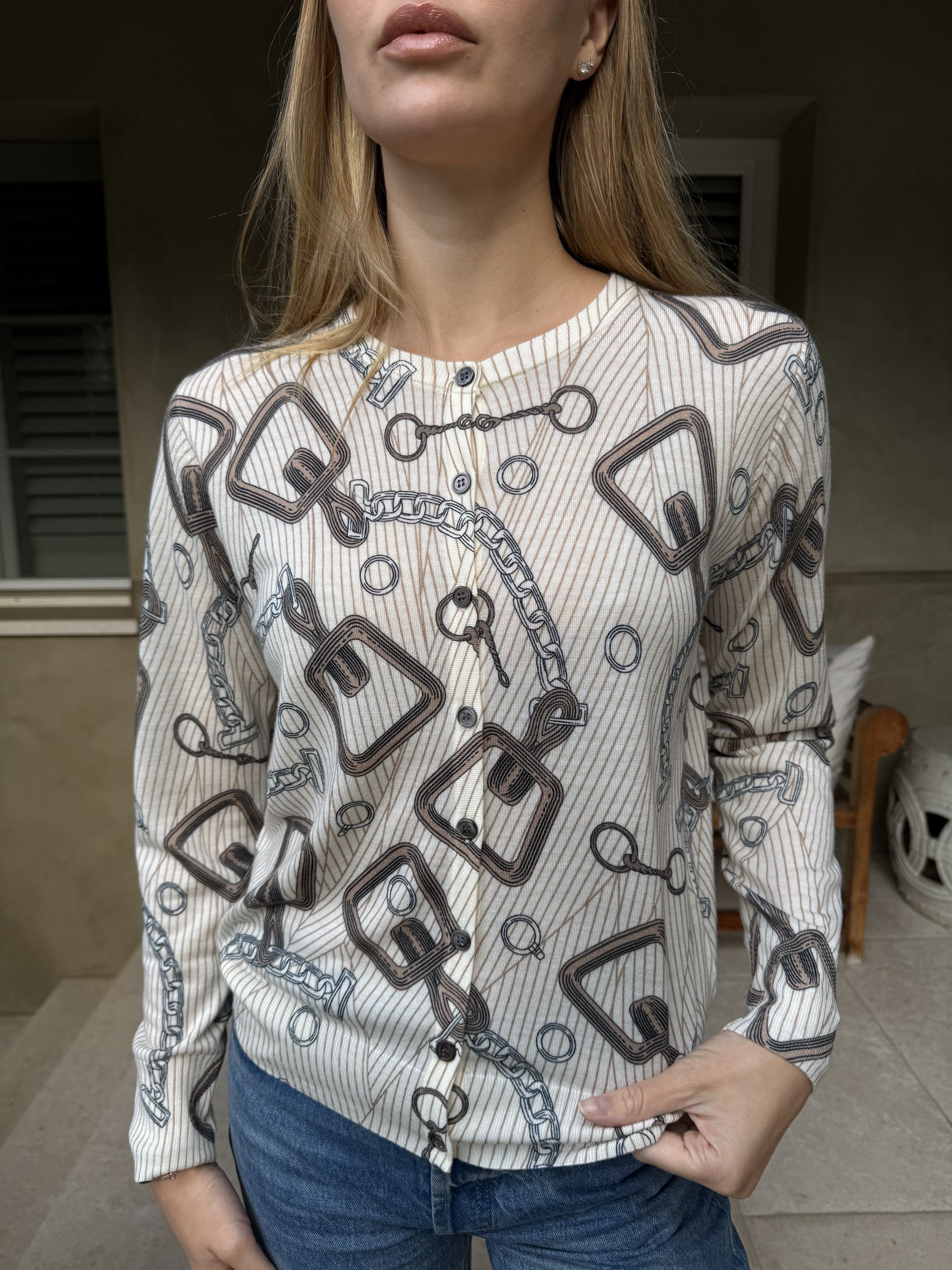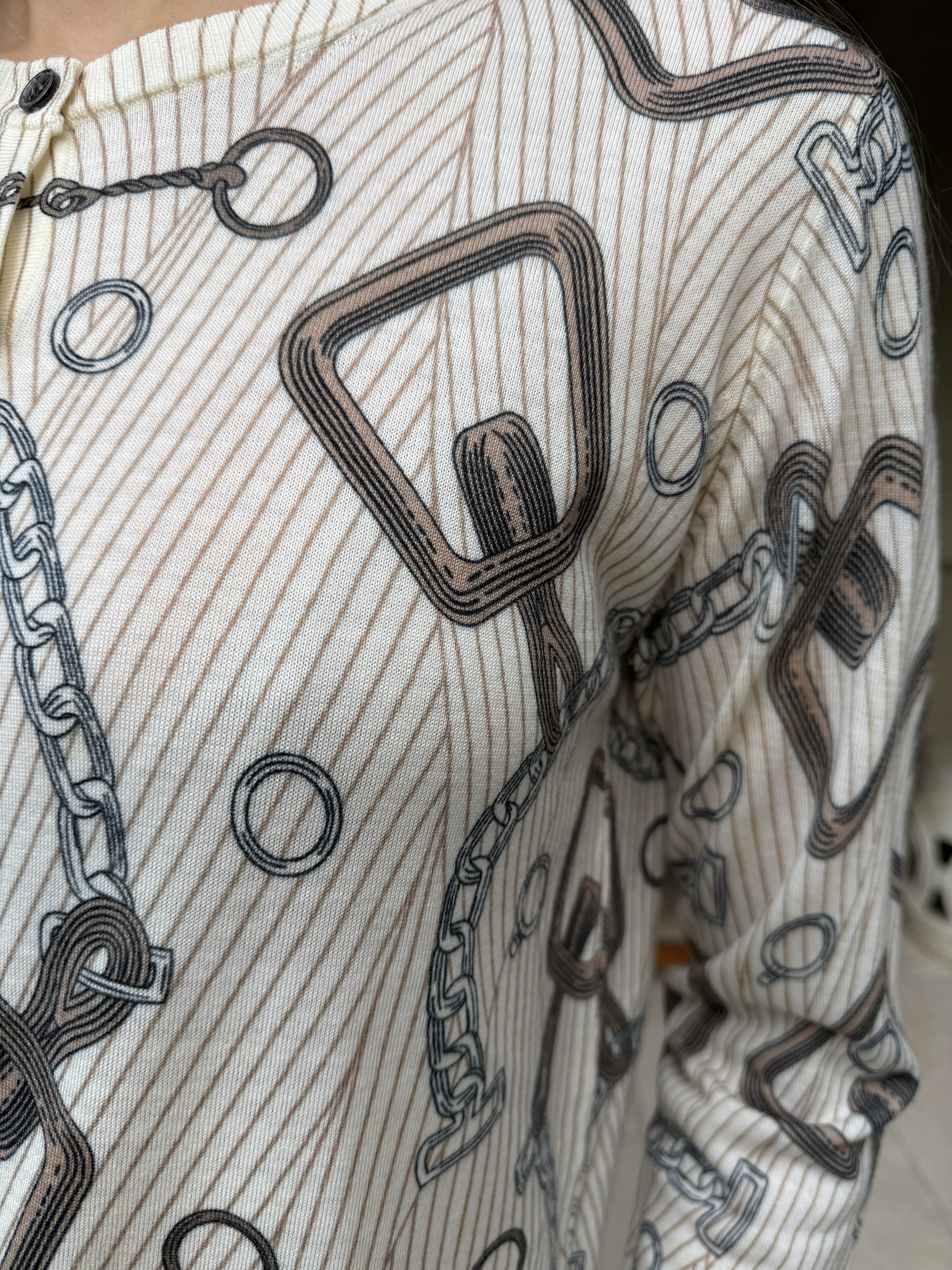 Lonnie Printed White and Brown Merino Wool Cardigan