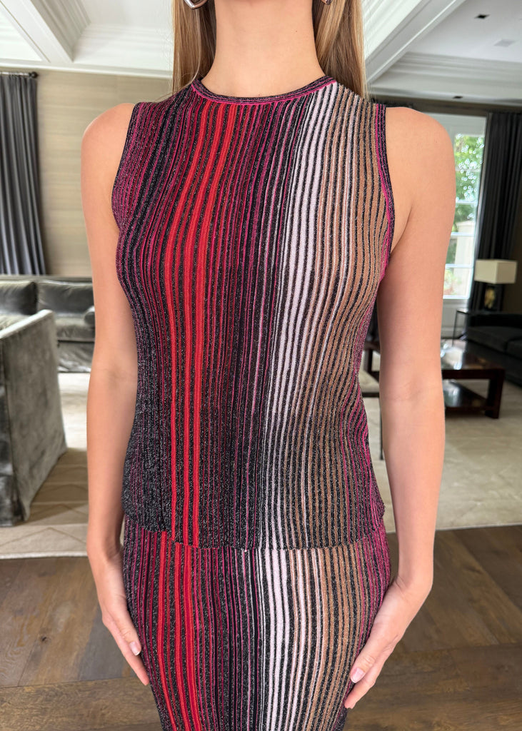 Missy Multicolor Striped Skirt and Sleeveless Top Set