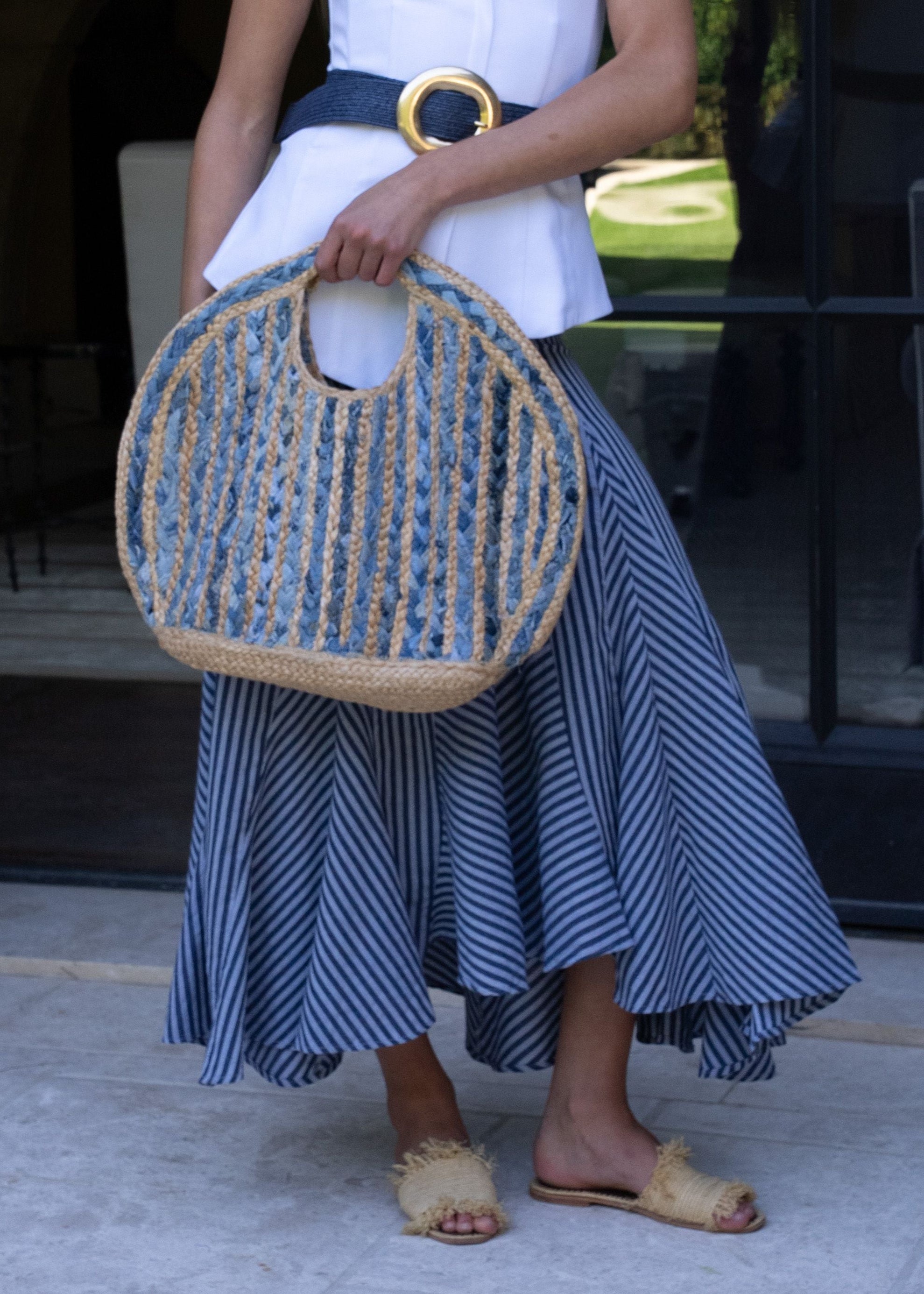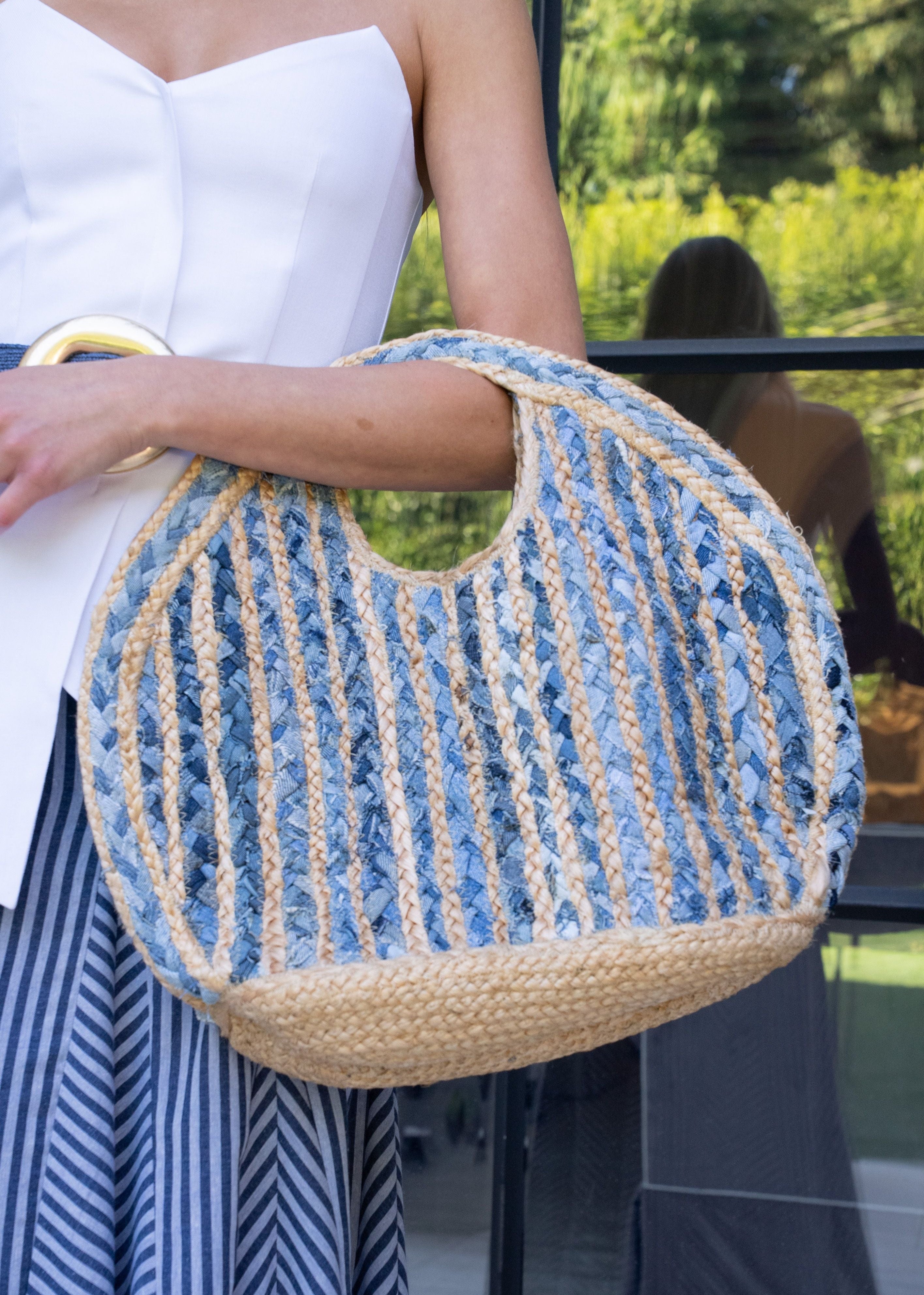 Meet your new go-to bag! This playful Monet style pairs soft denim with woven rattan for a breezy, textured look that works with everything. Roomy enough for your daily adventures, charming enough to make a statement. Denim meets natural vibes in one delightful package.