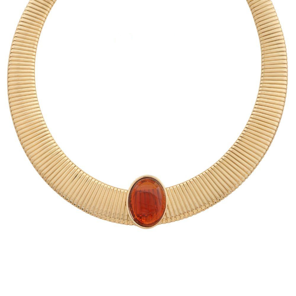 Olga Oval Stone Flat Chain Metal Necklace - Amber