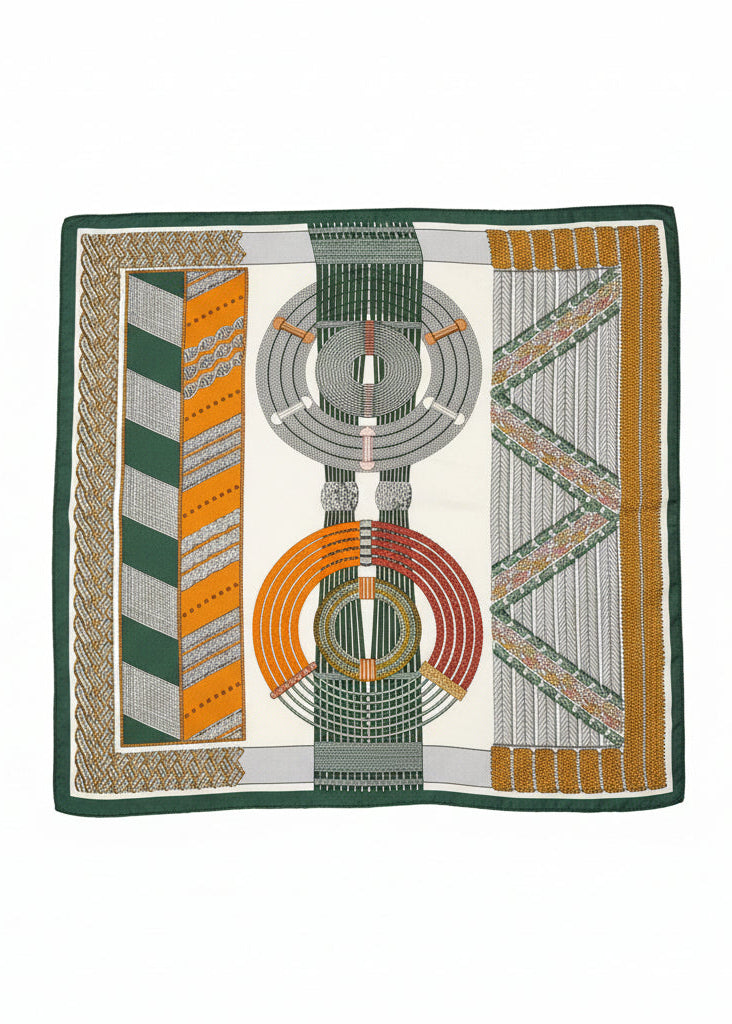 Elevate your accessory collection with this luxurious silky scarf, featuring an intricate multi-pattern design. Style it as a headscarf or knot it onto your bag for a polished, versatile, and effortlessly chic look.