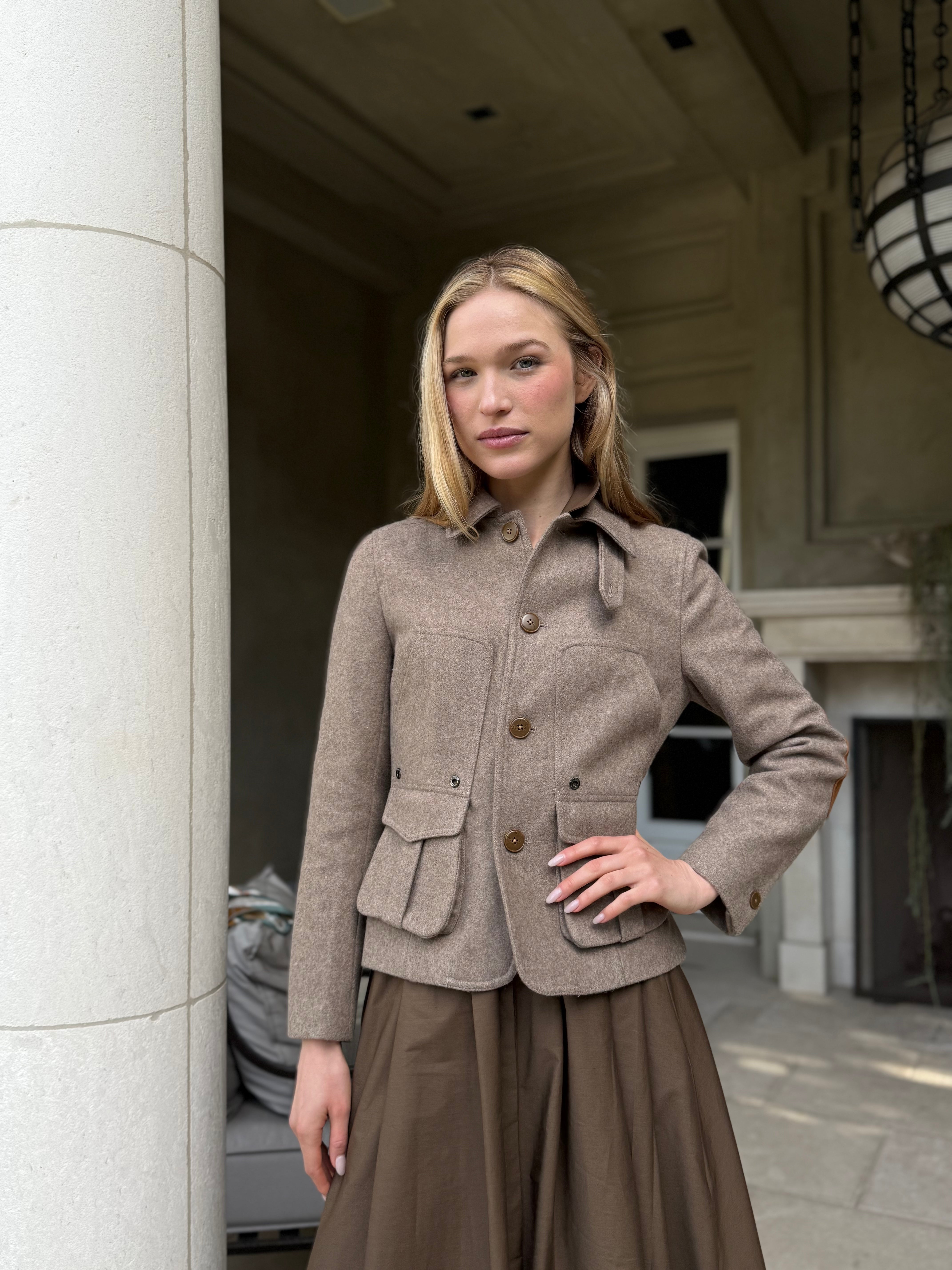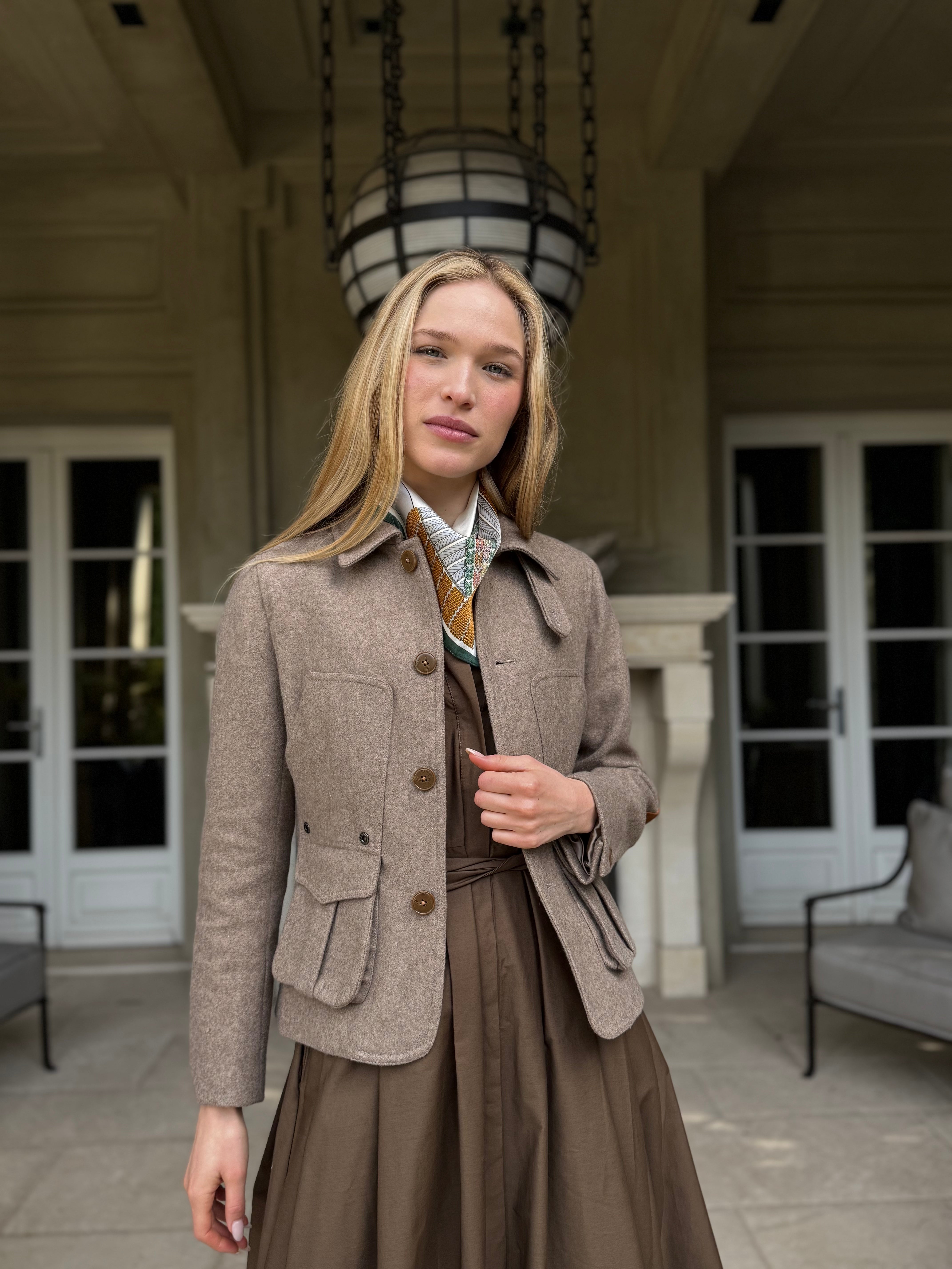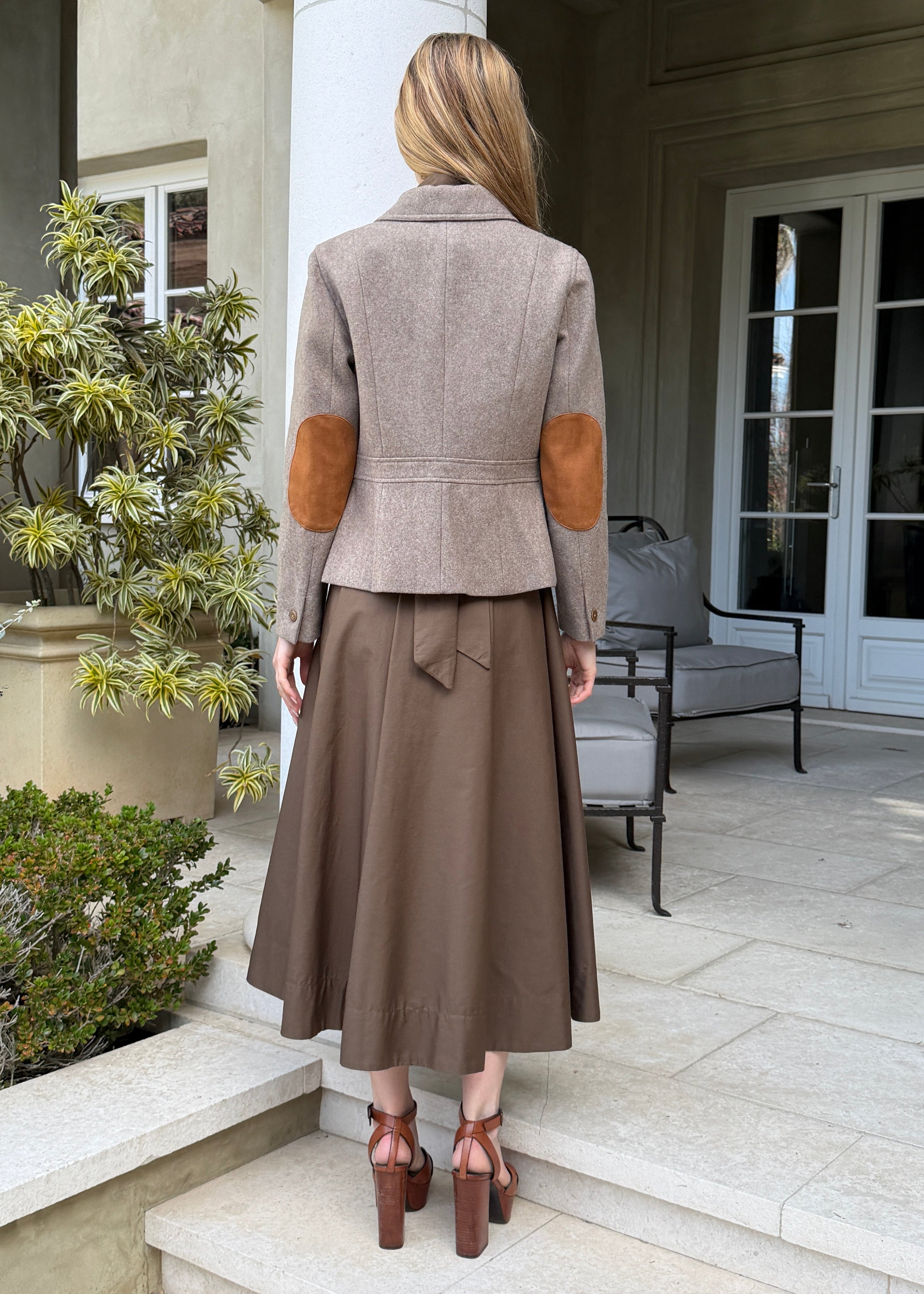 Meet the Oscar—a tailored taupe jacket that's ready for anything. With charming vintage elbow patches and a flattering fit, it's your go-to piece for work days and weekend adventures alike. Effortlessly chic, endlessly wearable.