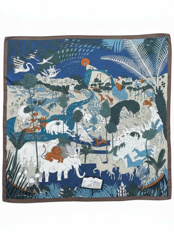 Preston Multicolor Animal Print Square Shawl - Navy