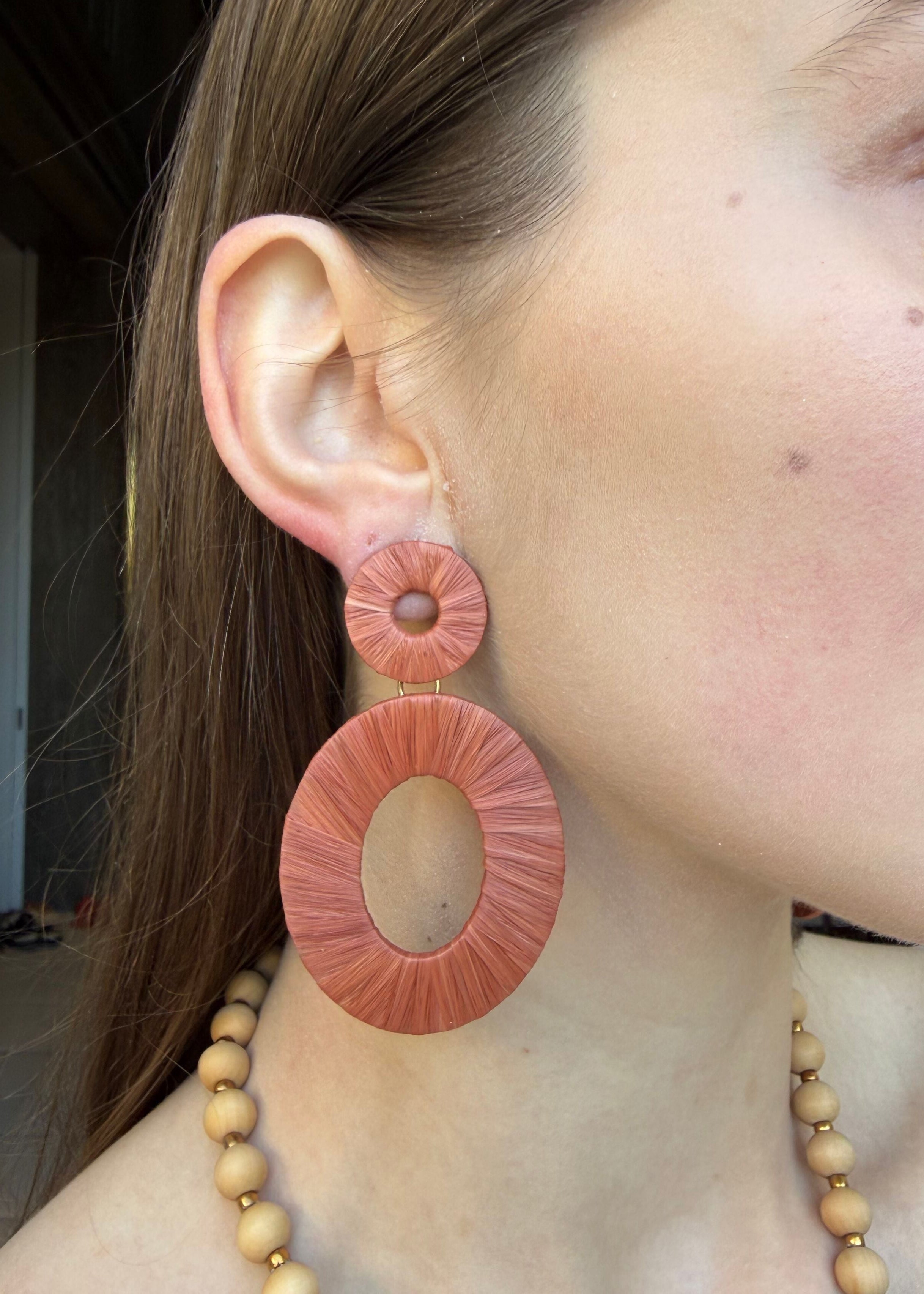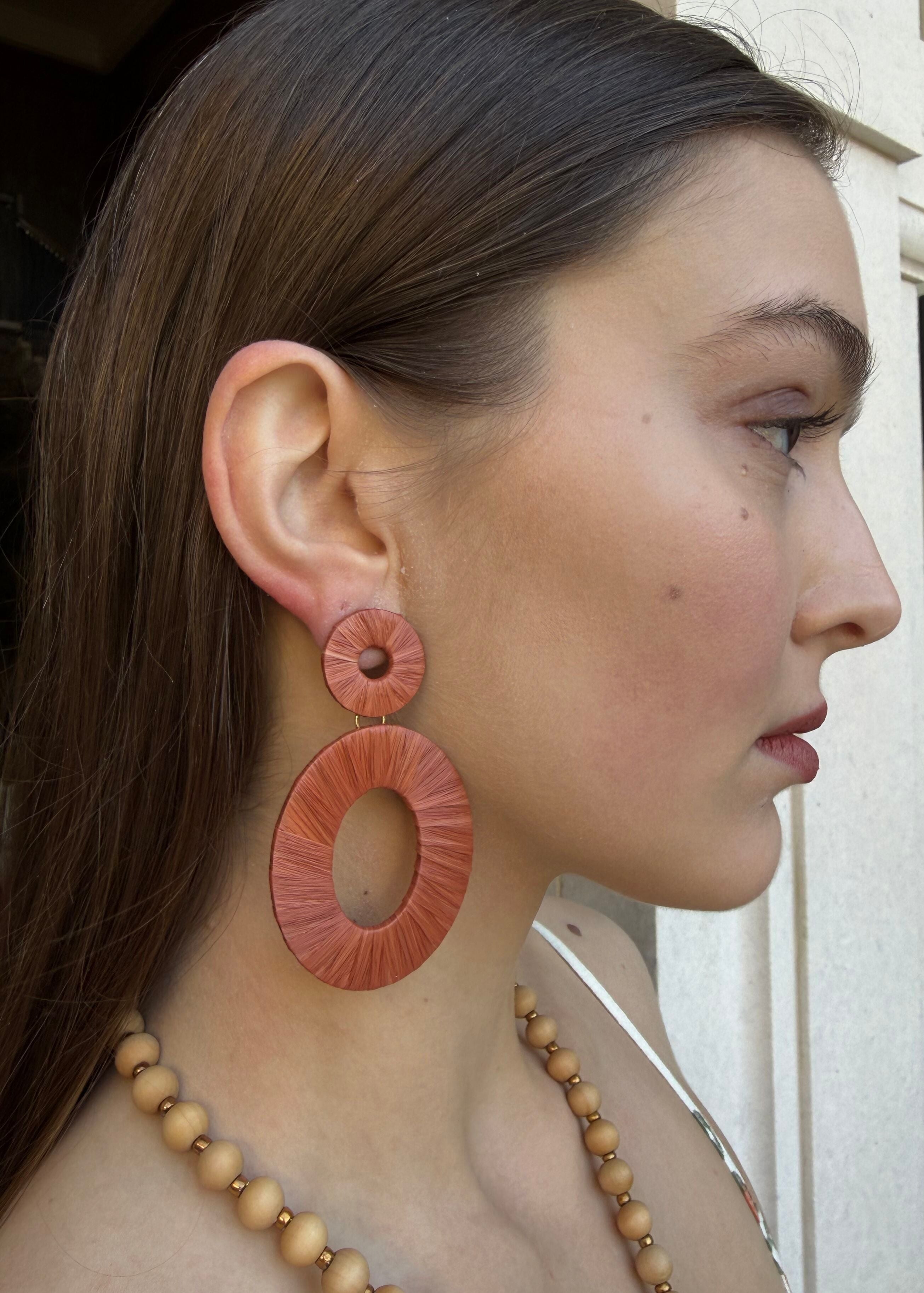 Ramira Circle Oval Link Raffia Dangle Earring - Terracotta
