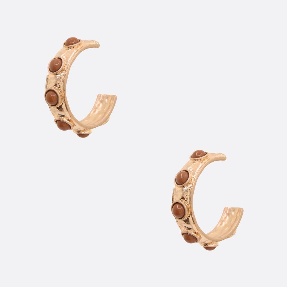 Ronnie Round Studded Edge Open Hoop Earrings - Taupe