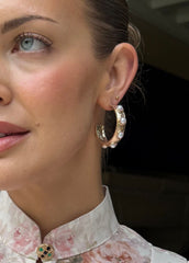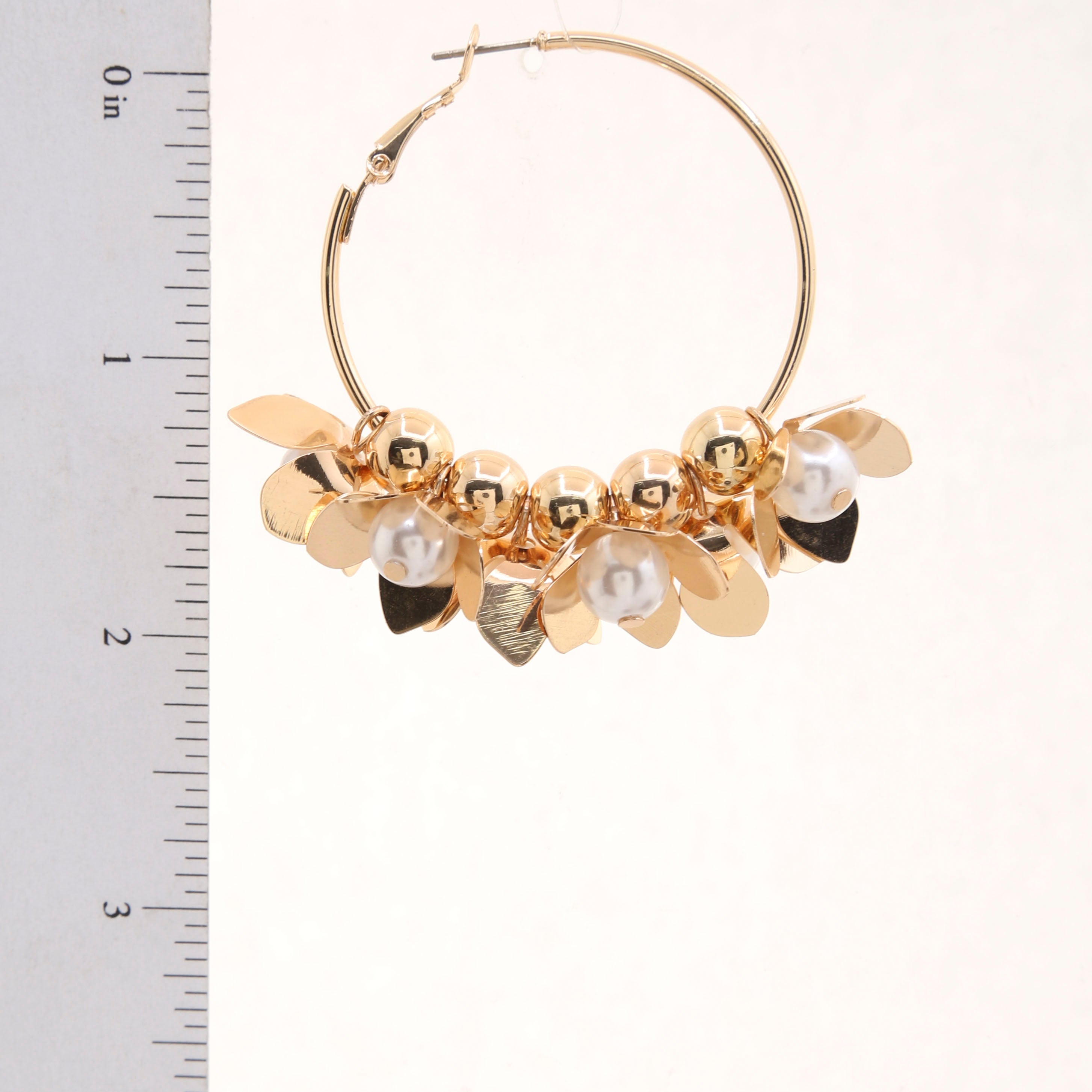 Trixie Triple Flower Pearl Embellished Metal Hoop Earrings